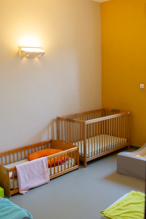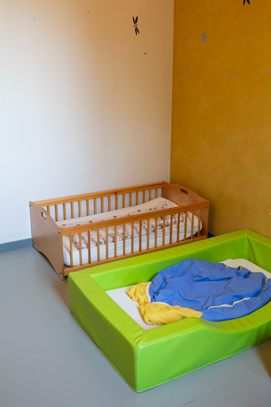 Le crèche dispose de 4 chambres climatisées pour les enfants. Chacun conserve la même chambre attribuée dès son arrivée jusqu’à son entrée à l’école. La crèche dispose de plusieurs types de couchages et différents aménagements sont possibles pour s’adapter aux besoins de l’enfant : lits avec barreaux, lits bas, contours de matelas, etc.