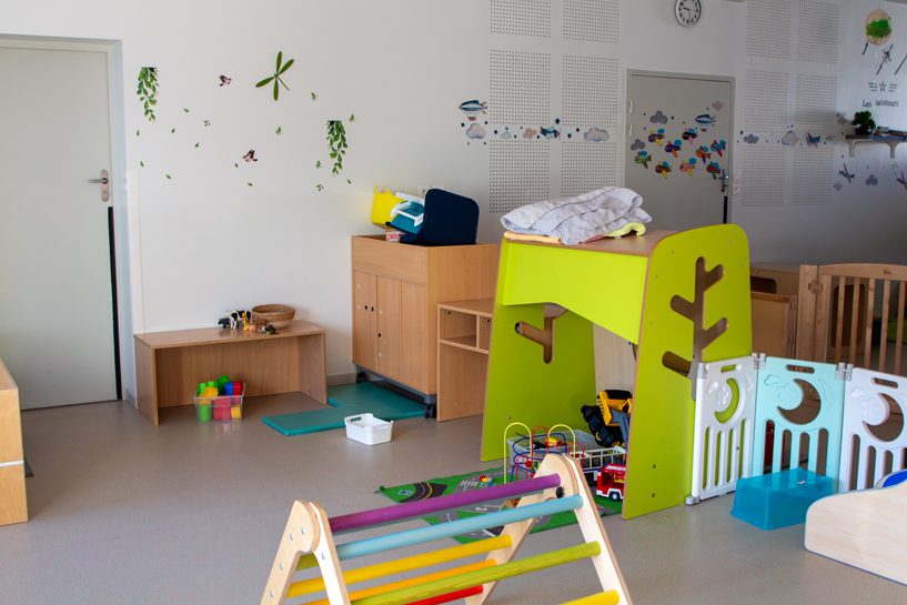Chaque espace est aménagé pour répondre aux besoins des enfants selon leur âge : se mouvoir, jouer, se reposer, expérimenter, observer et créer, dans un environnement sécurisé et rassurant.